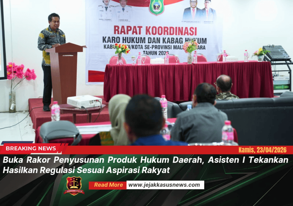 Jejakkasus News |TERNATE – Biro Hukum Setda Provinsi Maluku Utara menggelar Rapat Koordinasi sekaligus Bimtek Penyusunan Produk Hukum Daerah se-Provinsi Maluku Utara.