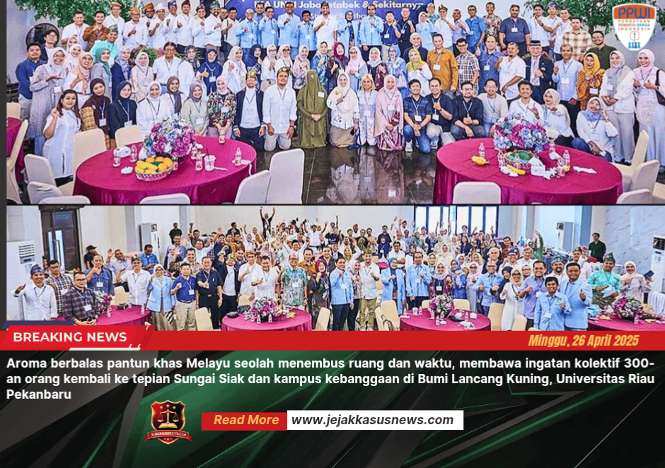 Jejakkasus News |Tangerang – Aroma berbalas pantun khas Melayu seolah menembus ruang dan waktu, membawa ingatan kolektif 300-an orang kembali ke tepian Sungai Siak dan kampus kebanggaan di Bumi Lancang Kuning, Universitas Riau Pekanbaru. Di tengah hiruk-pikuk megapolitan Jakarta, sebuah perhelatan akbar bertajuk Halal Bi Halal Ikatan Keluarga Alumni Universitas Riau (IKA UNRI) Jabodetabek dan Sekitarnya digelar dengan penuh khidmat pada hari Minggu, 26 April 2026. Acara yang mengusung tema besar “Stronger Together, Together Stronger” ini tidak sekadar menjadi ajang silaturahmi, melainkan sebuah tonggak sejarah baru bagi para alumni yang merantau di jantung ibu kota.