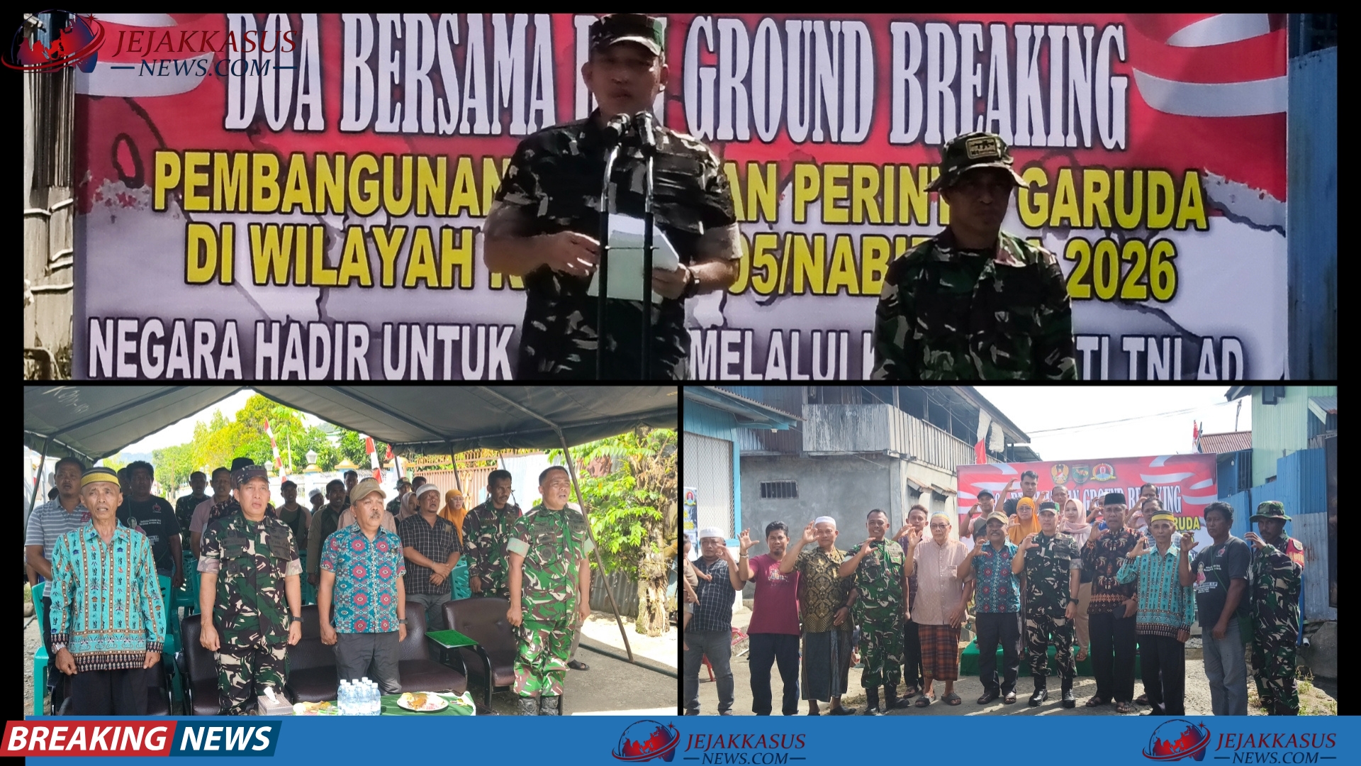 www.jejakkasusnews.com |Nabire Papua Tengah, 11 April 2026 — TNI melalui Kodim 1705/Nabire melaksanakan kegiatan doa bersama dan ground breaking pembangunan Jembatan Perintis Garuda di Kelurahan Girimulyo, Kabupaten Nabire, Provinsi Papua Tengah. Kegiatan ini menjadi bagian dari karya bakti TNI AD dalam mendukung pembangunan infrastruktur dan memperkuat kehadiran negara di tengah masyarakat.
