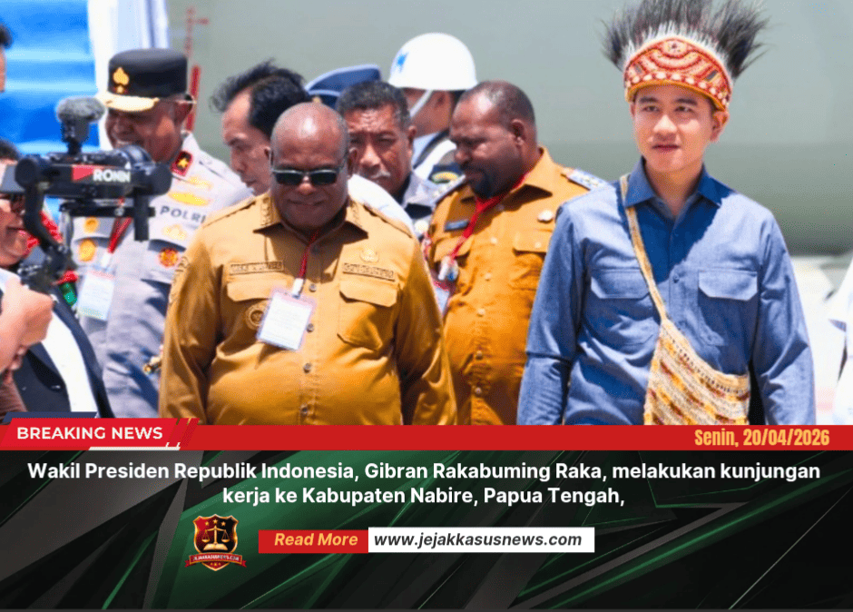 jejakkasus News|Nabire, Papua Tengah – Wakil Presiden Republik Indonesia, melakukan kunjungan kerja ke Kabupaten Nabire, Papua Tengah, Senin (20/4/2026). Kunjungan ini difokuskan pada peninjauan infrastruktur strategis dan penguatan koordinasi pembangunan di wilayah timur Indonesia.