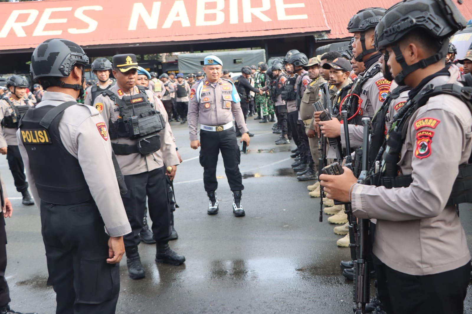 Sekitar pukul 07.40 WIT dilakukan pengecekan personel dan kelengkapan oleh pimpinan apel. Selanjutnya, pada pukul 08.00 WIT apel gabungan resmi selesai, dan seluruh personel menempati titik pengamanan yang telah ditentukan dengan kegiatan berlangsung tertib dan lancar sebagai wujud kesiapan aparat dalam menjaga keamanan dan ketertiban masyarakat di Kabupaten Nabire.