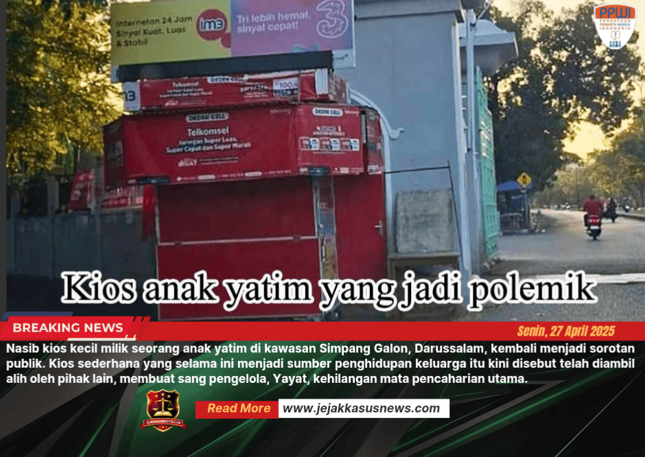 Jejakkasus News |Banda Aceh – Nasib kios kecil milik seorang anak yatim di kawasan Simpang Galon, Darussalam, kembali menjadi sorotan publik. Kios sederhana yang selama ini menjadi sumber penghidupan keluarga itu kini disebut telah diambil alih oleh pihak lain, membuat sang pengelola, Yayat, kehilangan mata pencaharian utama.